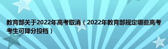 大家好,小高來為大家解答以上問題。教育部關(guān)于2022年高考取消,2022年教育部規(guī)定哪些高考考生可降分投檔很多人還不知道,現(xiàn)在讓我們一起來看看吧!