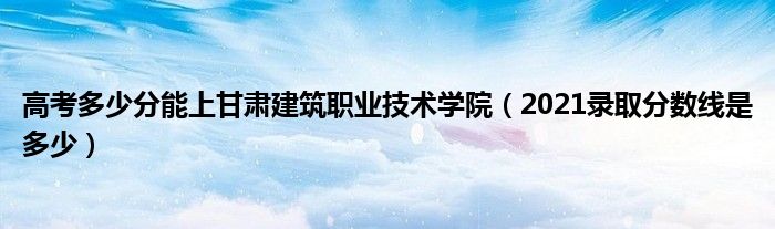 大家好,小高來為大家解答以上問題。高考多少分能上甘肅建筑職業(yè)技術(shù)學(xué)院,2021錄取分?jǐn)?shù)線是多少很多人還不知道,現(xiàn)在讓我們一起來看看吧!