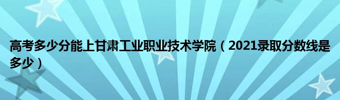 大家好,小高來(lái)為大家解答以上問(wèn)題。高考多少分能上甘肅工業(yè)職業(yè)技術(shù)學(xué)院,2021錄取分?jǐn)?shù)線是多少很多人還不知道,現(xiàn)在讓我們一起來(lái)看看吧!
