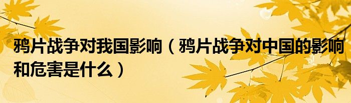 大家好,小高來(lái)為大家解答以上問(wèn)題。鴉片戰(zhàn)爭(zhēng)對(duì)我國(guó)影響,鴉片戰(zhàn)爭(zhēng)對(duì)中國(guó)的影響和危害是什么很多人還不知道,現(xiàn)在讓我們一起來(lái)看看吧!