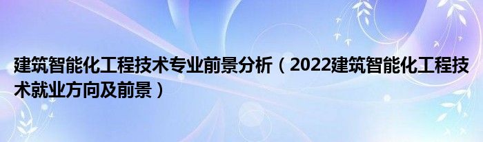 大家好,小高來(lái)為大家解答以上問(wèn)題。建筑智能化工程技術(shù)專(zhuān)業(yè)前景分析,2022建筑智能化工程技術(shù)就業(yè)方向及前景很多人還不知道,現(xiàn)在讓我們一起來(lái)看看吧!