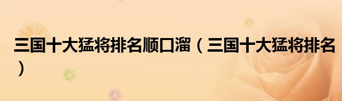 大家好,小高來(lái)為大家解答以上問(wèn)題。三國(guó)十大猛將排名順口溜,三國(guó)十大猛將排名很多人還不知道,現(xiàn)在讓我們一起來(lái)看看吧!