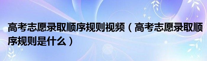大家好,小高來為大家解答以上問題。高考志愿錄取順序規(guī)則視頻,高考志愿錄取順序規(guī)則是什么很多人還不知道,現(xiàn)在讓我們一起來看看吧!