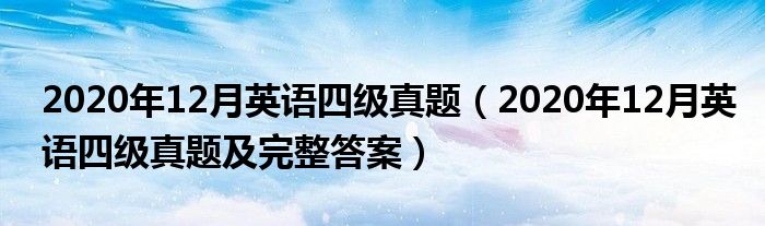 大家好,小高來為大家解答以上問題。2020年12月英語四級真題,2020年12月英語四級真題及完整答案很多人還不知道,現(xiàn)在讓我們一起來看看吧!