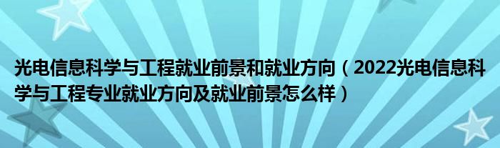 一、2022光電信息科學(xué)與工程專業(yè)就業(yè)情況