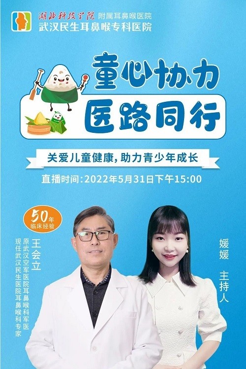 為關(guān)愛(ài)兒童健康,助力青少年成長(zhǎng),武漢民生耳鼻喉專(zhuān)科醫(yī)院將于2022年5月31日15:00開(kāi)啟【童心協(xié)力·醫(yī)路同行】專(zhuān)題線(xiàn)上公益問(wèn)診直播,在線(xiàn)講解兒童常見(jiàn)的耳鼻喉疾病的預(yù)防及治療。