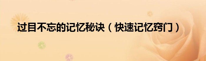 大家好,小高來為大家解答以上問題。過目不忘的記憶秘訣,快速記憶竅門很多人還不知道,現(xiàn)在讓我們一起來看看吧!