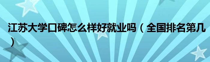 大家好,小高來(lái)為大家解答以上問(wèn)題。江蘇大學(xué)口碑怎么樣好就業(yè)嗎,全國(guó)排名第幾很多人還不知道,現(xiàn)在讓我們一起來(lái)看看吧!