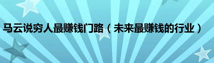 大家好,小高來為大家解答以上問題。馬云說窮人最賺錢門路,未來最賺錢的行業(yè)很多人還不知道,現(xiàn)在讓我們一起來看看吧!