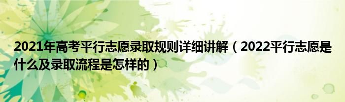 大家好,小高來為大家解答以上問題。2021年高考平行志愿錄取規(guī)則詳細講解,2022平行志愿是什么及錄取流程是怎樣的很多人還不知道,現(xiàn)在讓我們一起來看看吧!