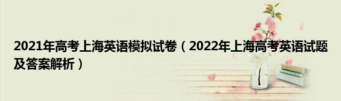 大家好,小高來為大家解答以上問題。2021年高考上海英語模擬試卷,2022年上海高考英語試題及答案解析很多人還不知道,現(xiàn)在讓我們一起來看看吧!