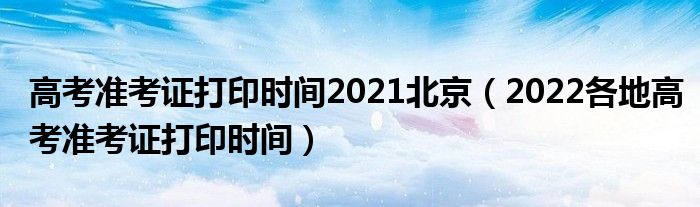 大家好,小高來為大家解答以上問題。高考準考證打印時間2021北京,2022各地高考準考證打印時間很多人還不知道,現在讓我們一起來看看吧!