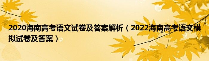 大家好,小高來為大家解答以上問題。2020海南高考語文試卷及答案解析,2022海南高考語文模擬試卷及答案很多人還不知道,現(xiàn)在讓我們一起來看看吧!