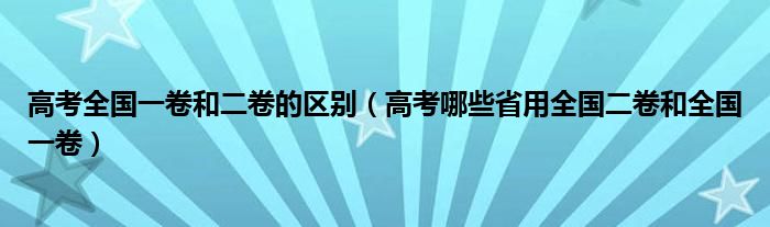 大家好,小高來為大家解答以上問題。高考全國一卷和二卷的區(qū)別,高考哪些省用全國二卷和全國一卷很多人還不知道,現(xiàn)在讓我們一起來看看吧!
