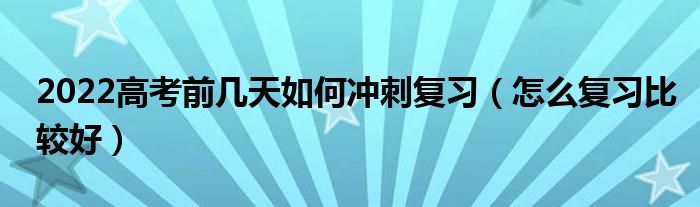 大家好,小高來為大家解答以上問題。2022高考前幾天如何沖刺復習,怎么復習比較好很多人還不知道,現(xiàn)在讓我們一起來看看吧!