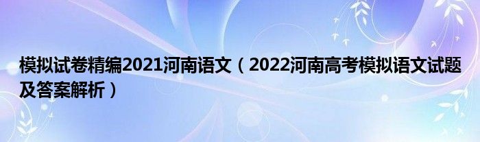 大家好,小高來為大家解答以上問題。模擬試卷精編2021河南語文,2022河南高考模擬語文試題及答案解析很多人還不知道,現(xiàn)在讓我們一起來看看吧!