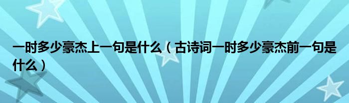 大家好,小高來為大家解答以上問題。一時(shí)多少豪杰上一句是什么,古詩詞一時(shí)多少豪杰前一句是什么很多人還不知道,現(xiàn)在讓我們一起來看看吧!
