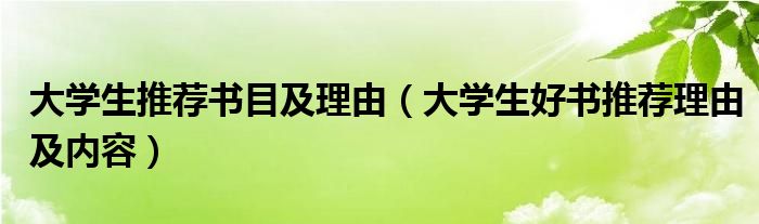 大家好,小高來(lái)為大家解答以上問(wèn)題。大學(xué)生推薦書目及理由,大學(xué)生好書推薦理由及內(nèi)容很多人還不知道,現(xiàn)在讓我們一起來(lái)看看吧!