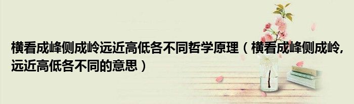 大家好,小高來為大家解答以上問題。橫看成峰側(cè)成嶺遠(yuǎn)近高低各不同哲學(xué)原理,橫看成峰側(cè)成嶺,遠(yuǎn)近高低各不同的意思很多人還不知道,現(xiàn)在讓我們一起來看看吧!