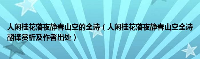四、全文翻譯春天夜晚,寂無(wú)人聲,芬芳桂花,輕輕飄落。青山碧林,更顯空寂。明月升起,驚動(dòng)幾只棲息山鳥。清脆鳴叫,長(zhǎng)久回蕩空曠山澗。