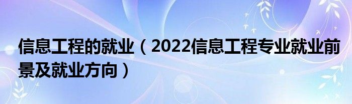 一、信息工程專業(yè)就業(yè)前景怎么樣