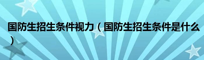 大家好,小高來(lái)為大家解答以上問(wèn)題。國(guó)防生招生條件視力,國(guó)防生招生條件是什么很多人還不知道,現(xiàn)在讓我們一起來(lái)看看吧!