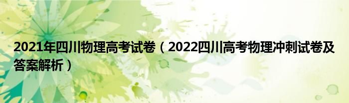 大家好,小高來為大家解答以上問題。2021年四川物理高考試卷,2022四川高考物理沖刺試卷及答案解析很多人還不知道,現在讓我們一起來看看吧!