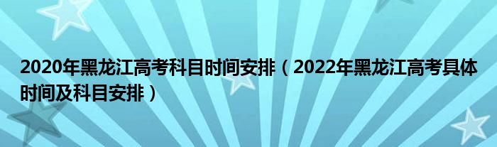大家好,小高來為大家解答以上問題。2020年黑龍江高考科目時(shí)間安排,2022年黑龍江高考具體時(shí)間及科目安排很多人還不知道,現(xiàn)在讓我們一起來看看吧!