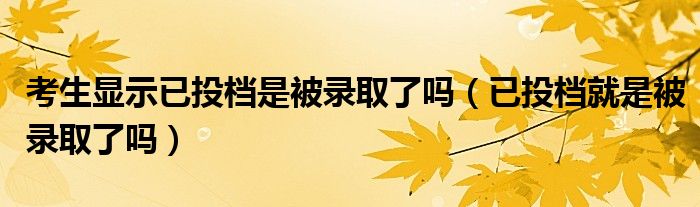 大家好,小高來為大家解答以上問題。考生顯示已投檔是被錄取了嗎,已投檔就是被錄取了嗎很多人還不知道,現(xiàn)在讓我們一起來看看吧!