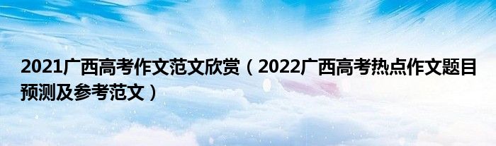 大家好,小高來為大家解答以上問題。2021廣西高考作文范文欣賞,2022廣西高考熱點作文題目預(yù)測及參考范文很多人還不知道,現(xiàn)在讓我們一起來看看吧!