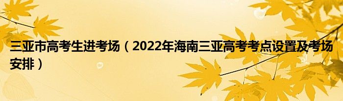 大家好,小高來(lái)為大家解答以上問(wèn)題。三亞市高考生進(jìn)考場(chǎng),2022年海南三亞高考考點(diǎn)設(shè)置及考場(chǎng)安排很多人還不知道,現(xiàn)在讓我們一起來(lái)看看吧!
