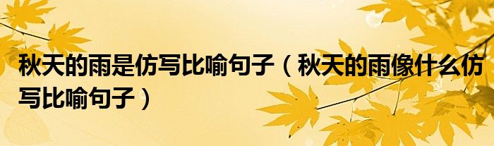 大家好,小高來為大家解答以上問題。秋天的雨是仿寫比喻句子,秋天的雨像什么仿寫比喻句子很多人還不知道,現(xiàn)在讓我們一起來看看吧!