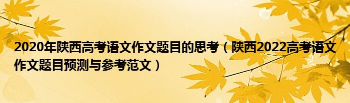 大家好,小高來為大家解答以上問題。2020年陜西高考語文作文題目的思考,陜西2022高考語文作文題目預(yù)測與參考范文很多人還不知道,現(xiàn)在讓我們一起來看看吧!