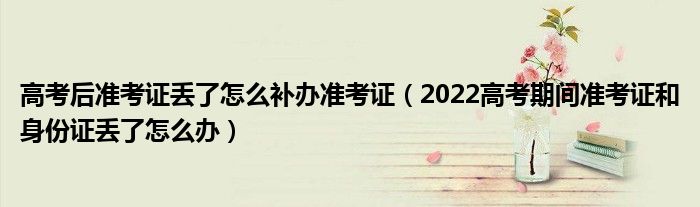 大家好,小高來為大家解答以上問題。高考后準(zhǔn)考證丟了怎么補(bǔ)辦準(zhǔn)考證,2022高考期間準(zhǔn)考證和身份證丟了怎么辦很多人還不知道,現(xiàn)在讓我們一起來看看吧!