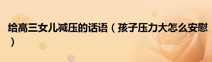 大家好,小高來為大家解答以上問題。給高三女兒減壓的話語,孩子壓力大怎么安慰很多人還不知道,現(xiàn)在讓我們一起來看看吧!