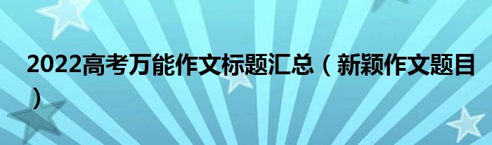 大家好,小高來為大家解答以上問題。2022高考萬能作文標(biāo)題匯總,新穎作文題目很多人還不知道,現(xiàn)在讓我們一起來看看吧!