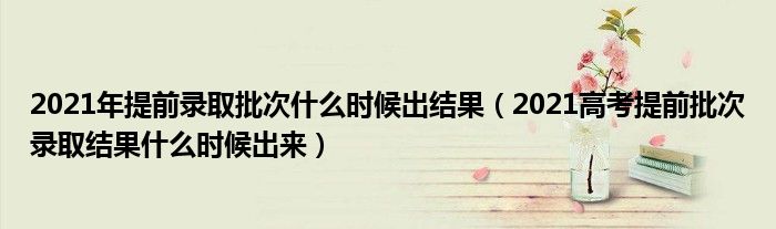 大家好,小高來為大家解答以上問題。2021年提前錄取批次什么時候出結(jié)果,2021高考提前批次錄取結(jié)果什么時候出來很多人還不知道,現(xiàn)在讓我們一起來看看吧!