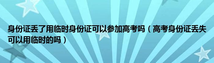 大家好,小高來為大家解答以上問題。身份證丟了用臨時身份證可以參加高考嗎,高考身份證丟失可以用臨時的嗎很多人還不知道,現(xiàn)在讓我們一起來看看吧!