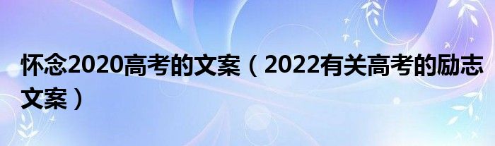 大家好,小高來為大家解答以上問題。懷念2020高考的文案,2022有關(guān)高考的勵志文案很多人還不知道,現(xiàn)在讓我們一起來看看吧!