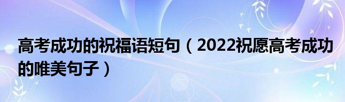 大家好,小高來為大家解答以上問題。高考成功的祝福語短句,2022祝愿高考成功的唯美句子很多人還不知道,現(xiàn)在讓我們一起來看看吧!