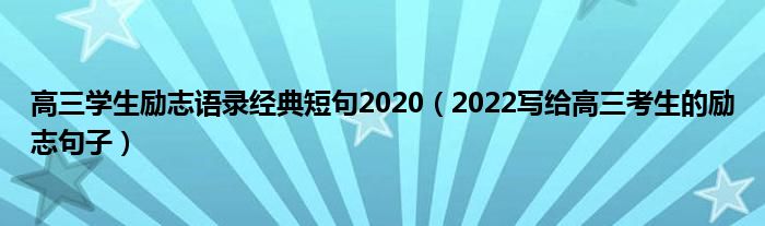 大家好,小高來(lái)為大家解答以上問(wèn)題。高三學(xué)生勵(lì)志語(yǔ)錄經(jīng)典短句2020,2022寫(xiě)給高三考生的勵(lì)志句子很多人還不知道,現(xiàn)在讓我們一起來(lái)看看吧!