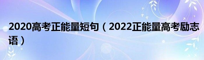 大家好,小高來為大家解答以上問題。2020高考正能量短句,2022正能量高考勵志語很多人還不知道,現在讓我們一起來看看吧!