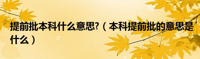 大家好,小高來(lái)為大家解答以上問題。提前批本科什么意思?,本科提前批的意思是什么很多人還不知道,現(xiàn)在讓我們一起來(lái)看看吧!