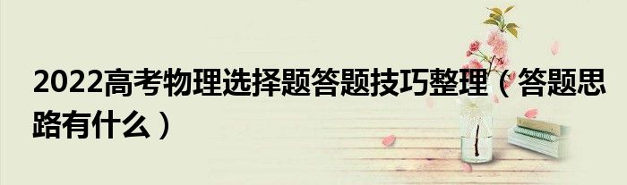 大家好,小高來為大家解答以上問題。2022高考物理選擇題答題技巧整理,答題思路有什么很多人還不知道,現在讓我們一起來看看吧!