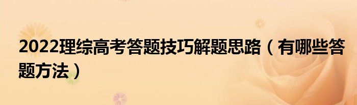 大家好,小高來為大家解答以上問題。2022理綜高考答題技巧解題思路,有哪些答題方法很多人還不知道,現(xiàn)在讓我們一起來看看吧!