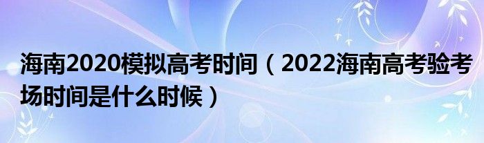 大家好,小高來為大家解答以上問題。海南2020模擬高考時(shí)間,2022海南高考驗(yàn)考場時(shí)間是什么時(shí)候很多人還不知道,現(xiàn)在讓我們一起來看看吧!