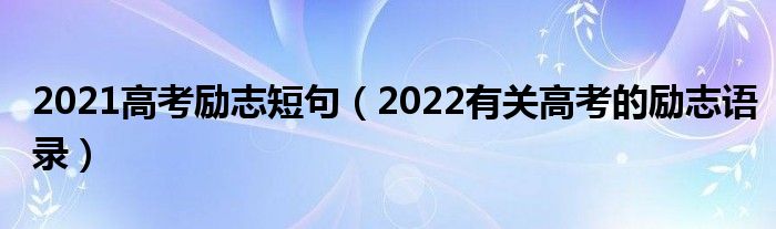 大家好,小高來為大家解答以上問題。2021高考勵(lì)志短句,2022有關(guān)高考的勵(lì)志語(yǔ)錄很多人還不知道,現(xiàn)在讓我們一起來看看吧!