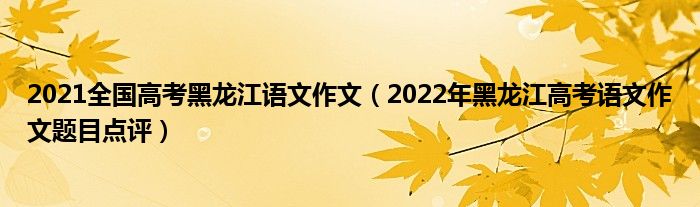 大家好,小高來為大家解答以上問題。2021全國高考黑龍江語文作文,2022年黑龍江高考語文作文題目點評很多人還不知道,現(xiàn)在讓我們一起來看看吧!
