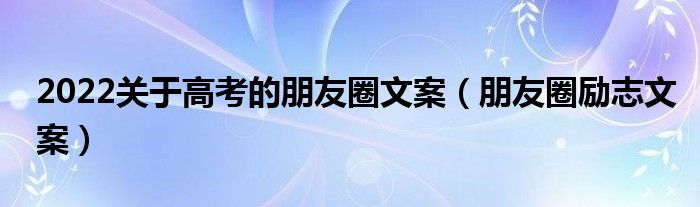 大家好,小高來為大家解答以上問題。2022關(guān)于高考的朋友圈文案,朋友圈勵志文案很多人還不知道,現(xiàn)在讓我們一起來看看吧!
