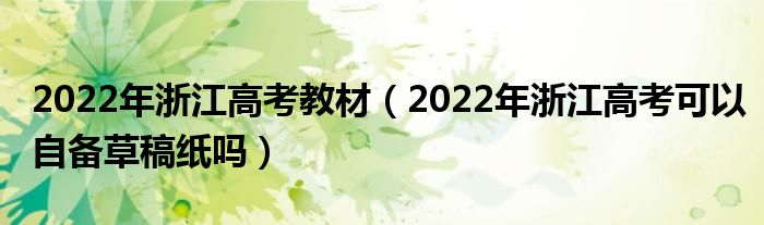 大家好,小高來為大家解答以上問題。2022年浙江高考教材,2022年浙江高考可以自備草稿紙嗎很多人還不知道,現(xiàn)在讓我們一起來看看吧!